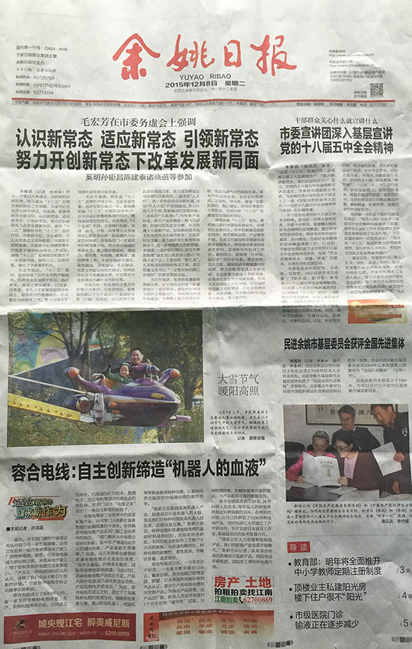 時(shí)間:2015-12-08 來源:余姚日?qǐng)?bào)